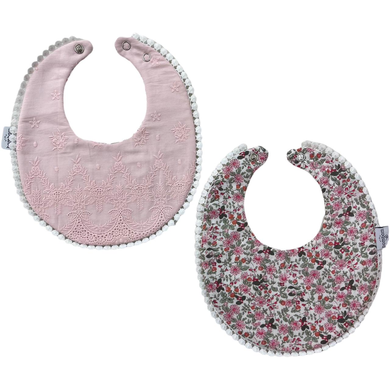 Babero Reversible Rosa con Encaje y Flores