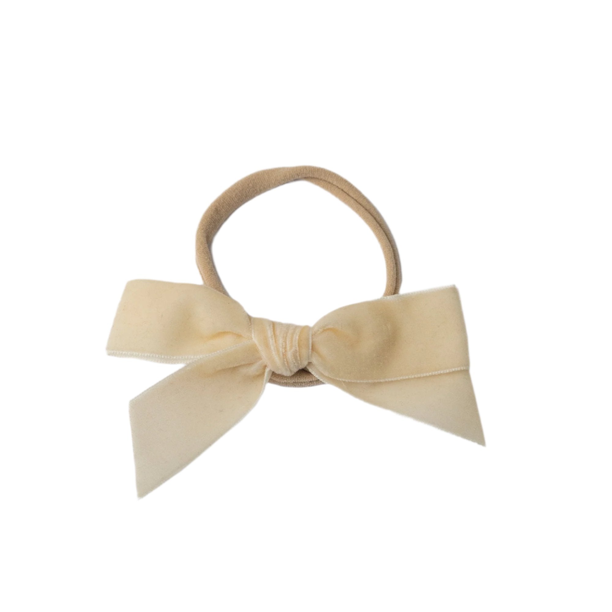Tiara para bebé hecha a mano con nylon flexible y un delicado moñito de listón de terciopelo. Su diseño unitalla se adapta al crecimiento del bebé, siendo cómoda desde recién nacido hasta más grande. Ideal para agregar un toque encantador a cualquier conjunto, con la suavidad y elasticidad que garantiza comodidad todo el día.