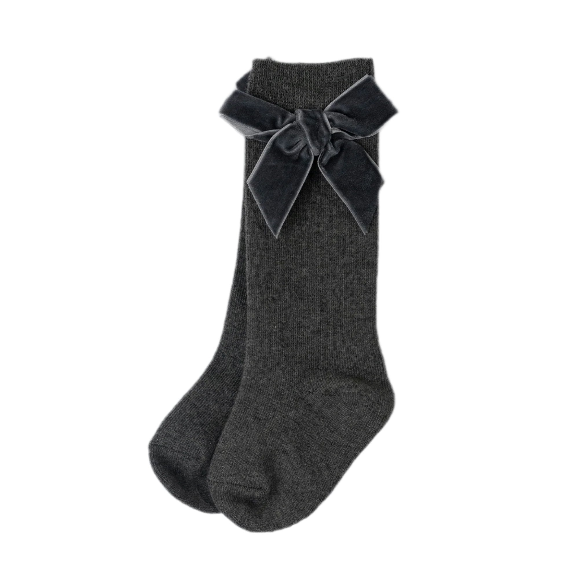 Calceta alta confeccionada en suave material que ofrece comodidad durante todo el día. Con un delicado moño de terciopelo, aportando un toque elegante y sofisticado. Ideal para ocasiones especiales o para un look encantador en el día a día.