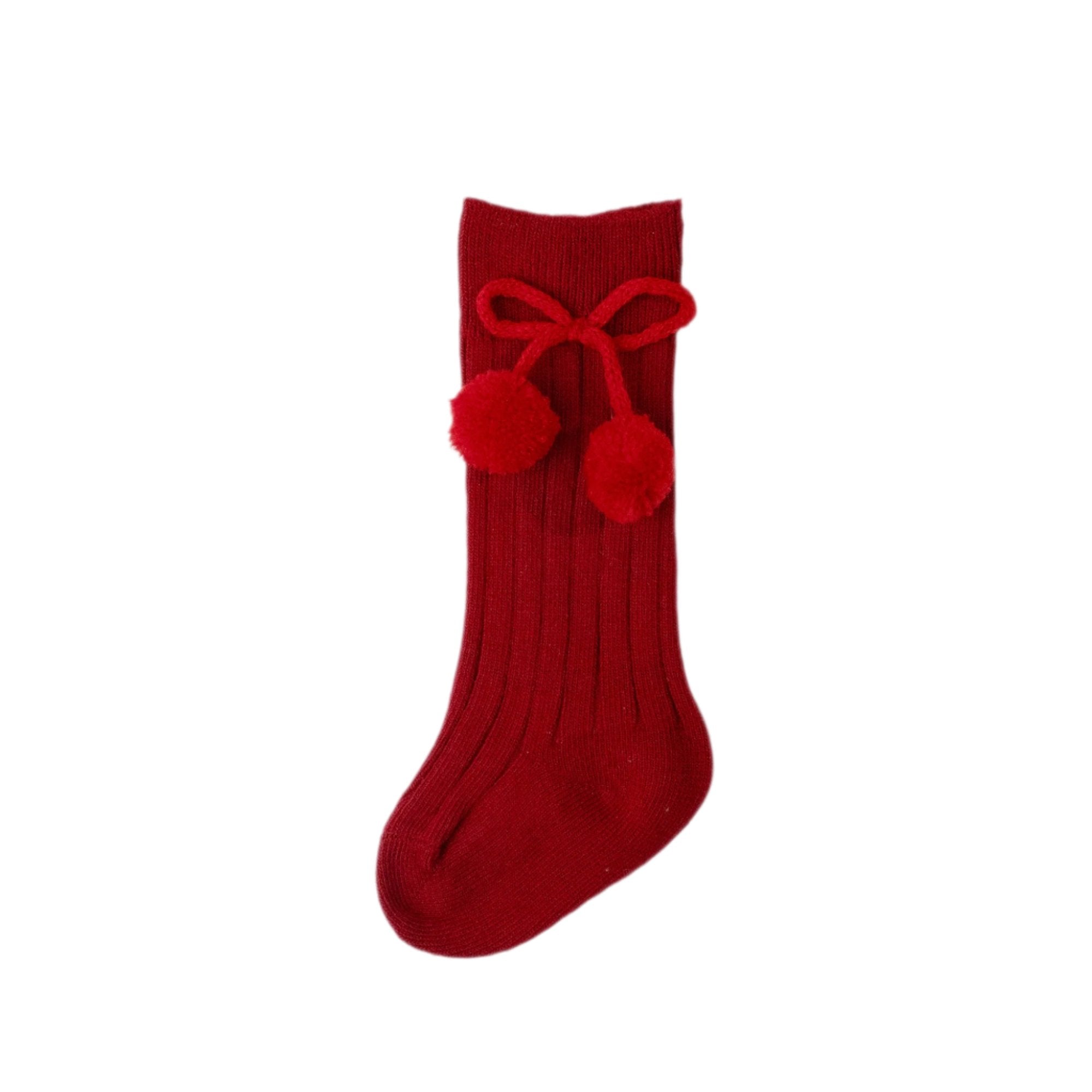 Calceta alta confeccionada en suave material que ofrece comodidad durante todo el día. Con un divertido moño con pompones, aportando un toque elegante y sofisticado. Ideal para ocasiones especiales o para un look encantador en el día a día.
