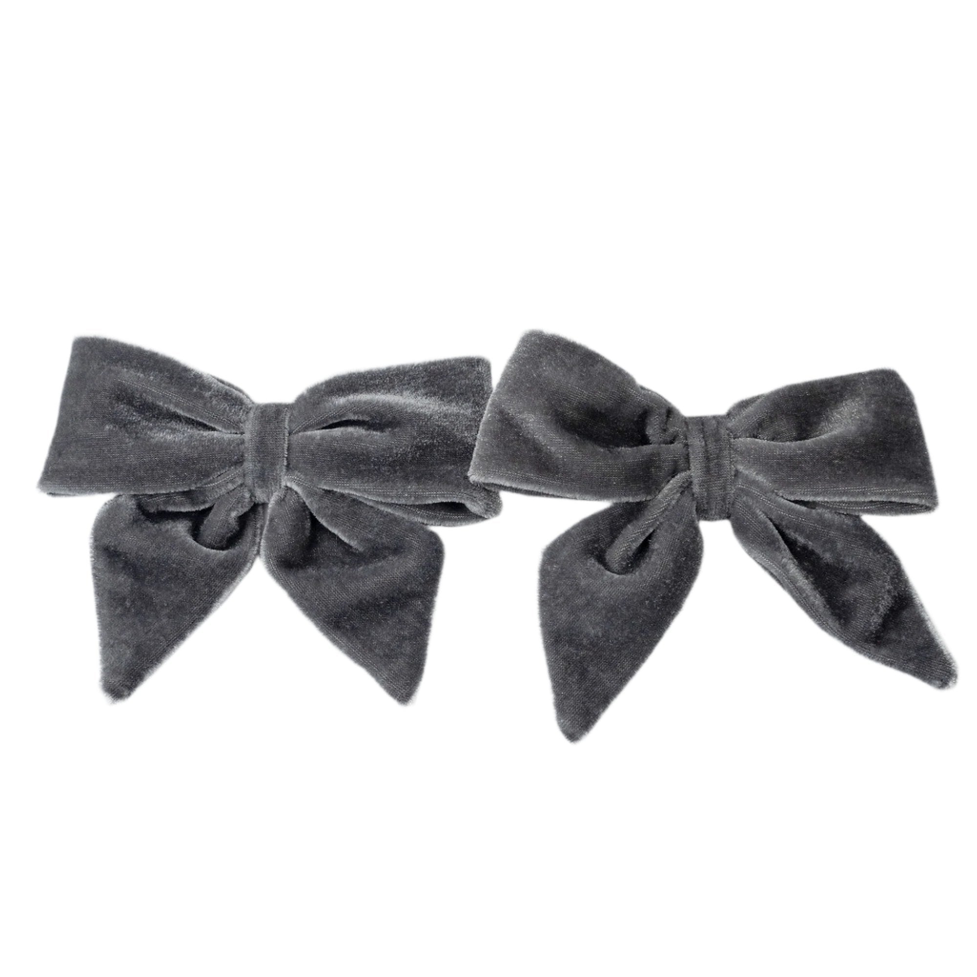 Par de moños de terciopelo para niña, delicados y elegantes, perfectos para añadir un toque sofisticado a cualquier look. Con un diseño suave y brillante, estos moños son ideales para peinados especiales o para el día a día, brindando estilo y confort.