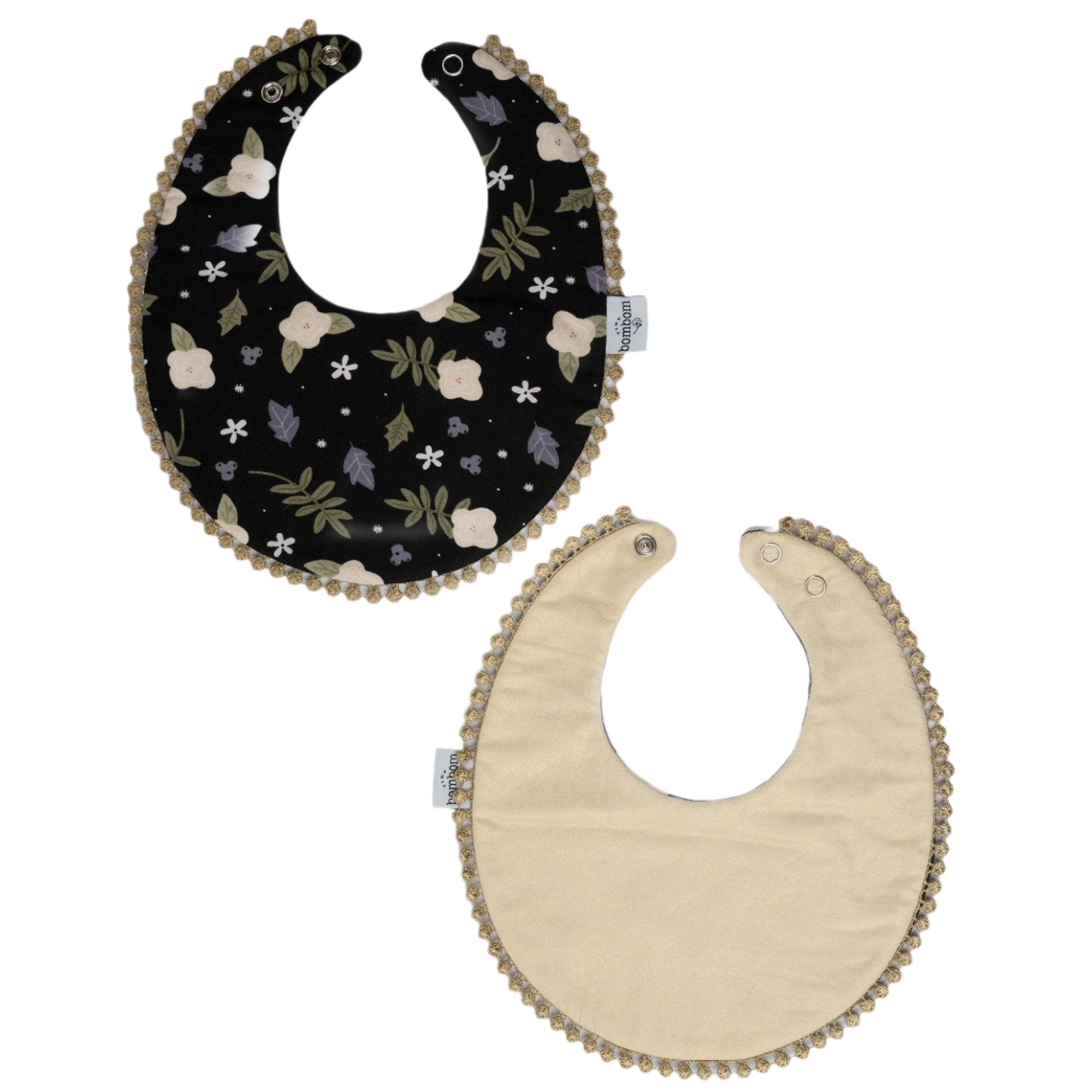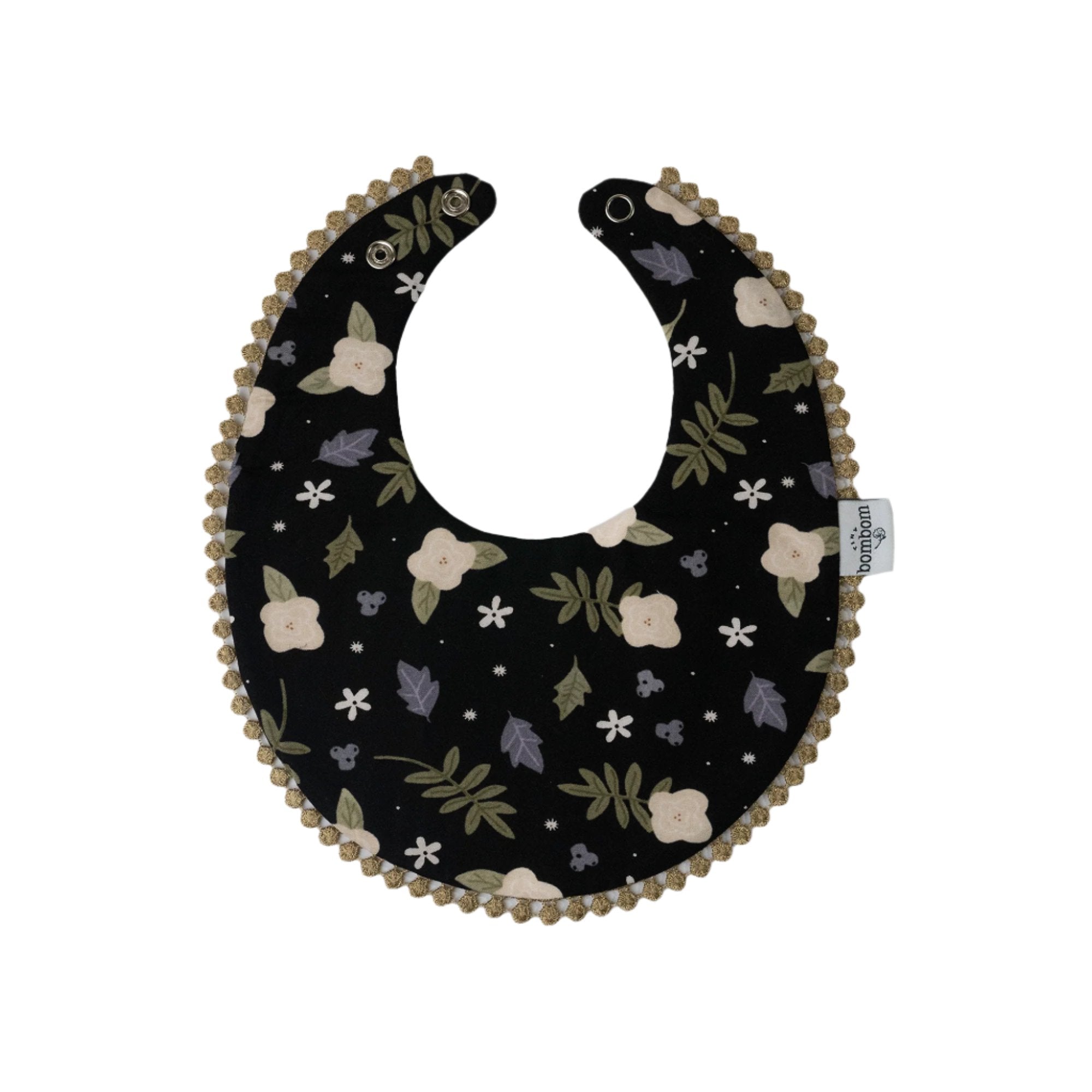 Babero Reversibles Flor Negro con Dorado