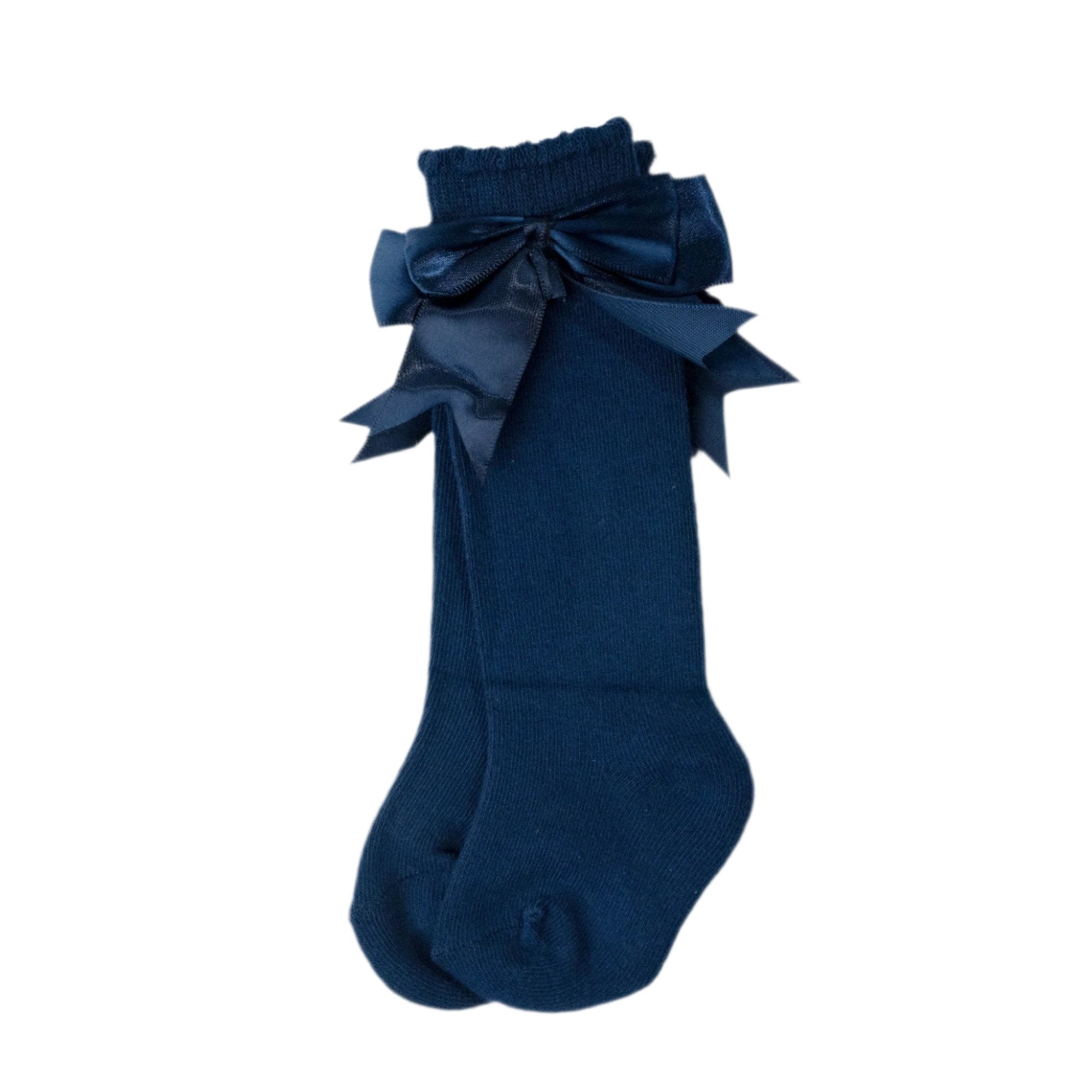 Calceta alta confeccionada en suave material que ofrece comodidad durante todo el día. Con un delicado moño de satin, aportando un toque elegante y sofisticado. Ideal para ocasiones especiales o para un look encantador en el día a día.