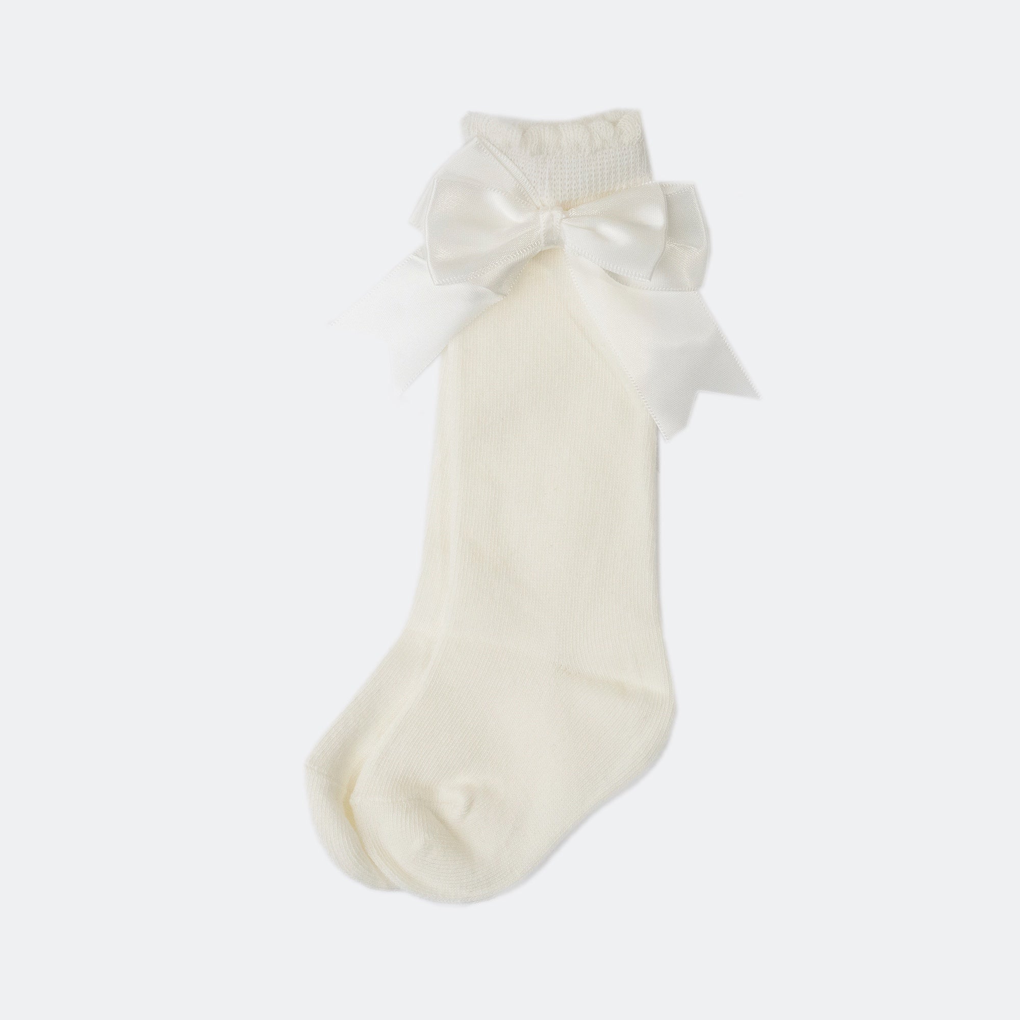 Calceta alta confeccionada en suave material que ofrece comodidad durante todo el día. Con un delicado moño de satin, aportando un toque elegante y sofisticado. Ideal para ocasiones especiales o para un look encantador en el día a día.