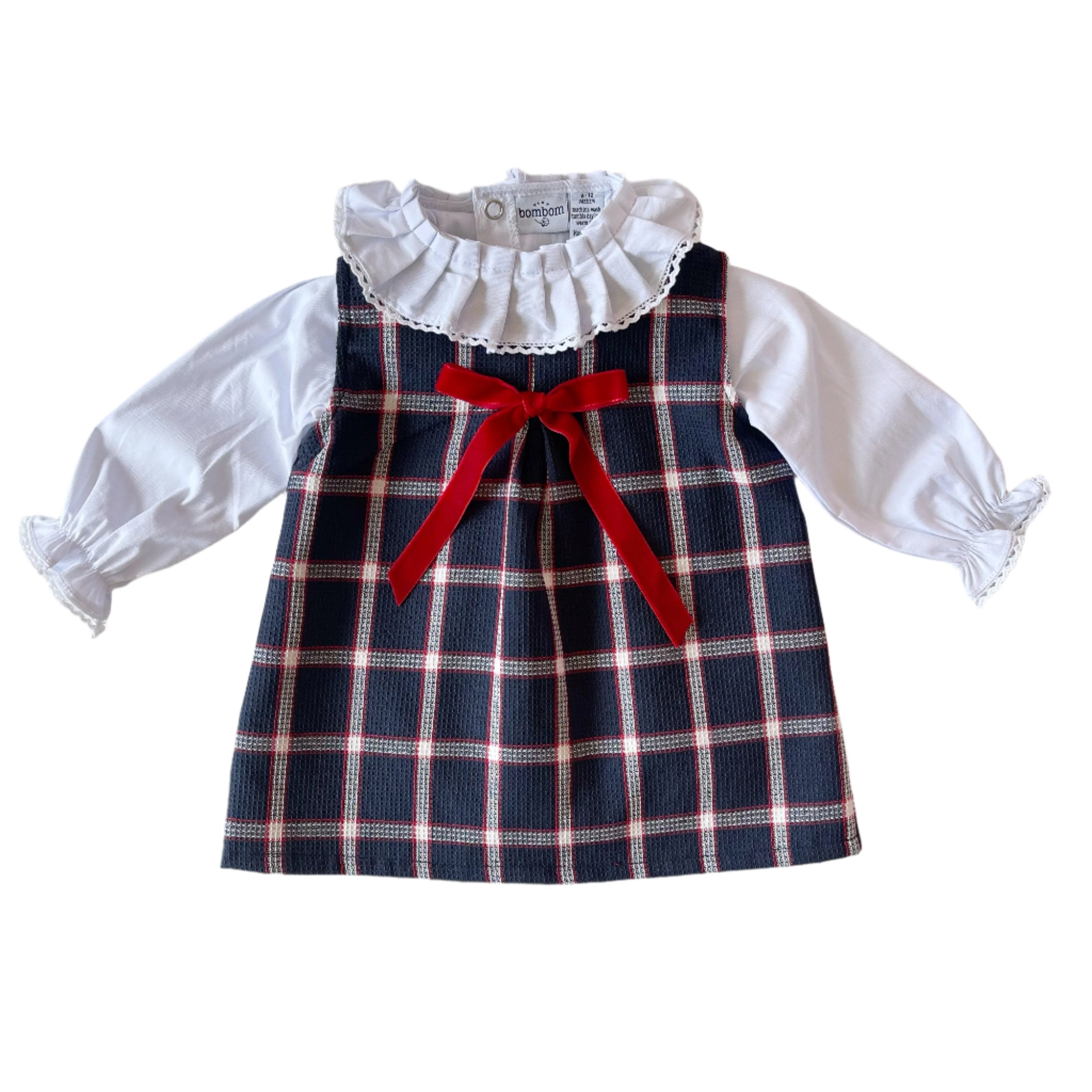 Vestido compuesto por dos piezas: un encantador vestido y una blusita aparte, confeccionado en suaves telas de algodón, perfectas para la piel delicada del bebé. Ideal para la temporada navideña, este conjunto ofrece un diseño festivo y cómodo, con detalles encantadores que lo hacen perfecto para las celebraciones. La blusita adicional brinda mayor confort y versatilidad, permitiendo adaptarse a diferentes temperaturas. Un look adorable y práctico para las fiestas.
