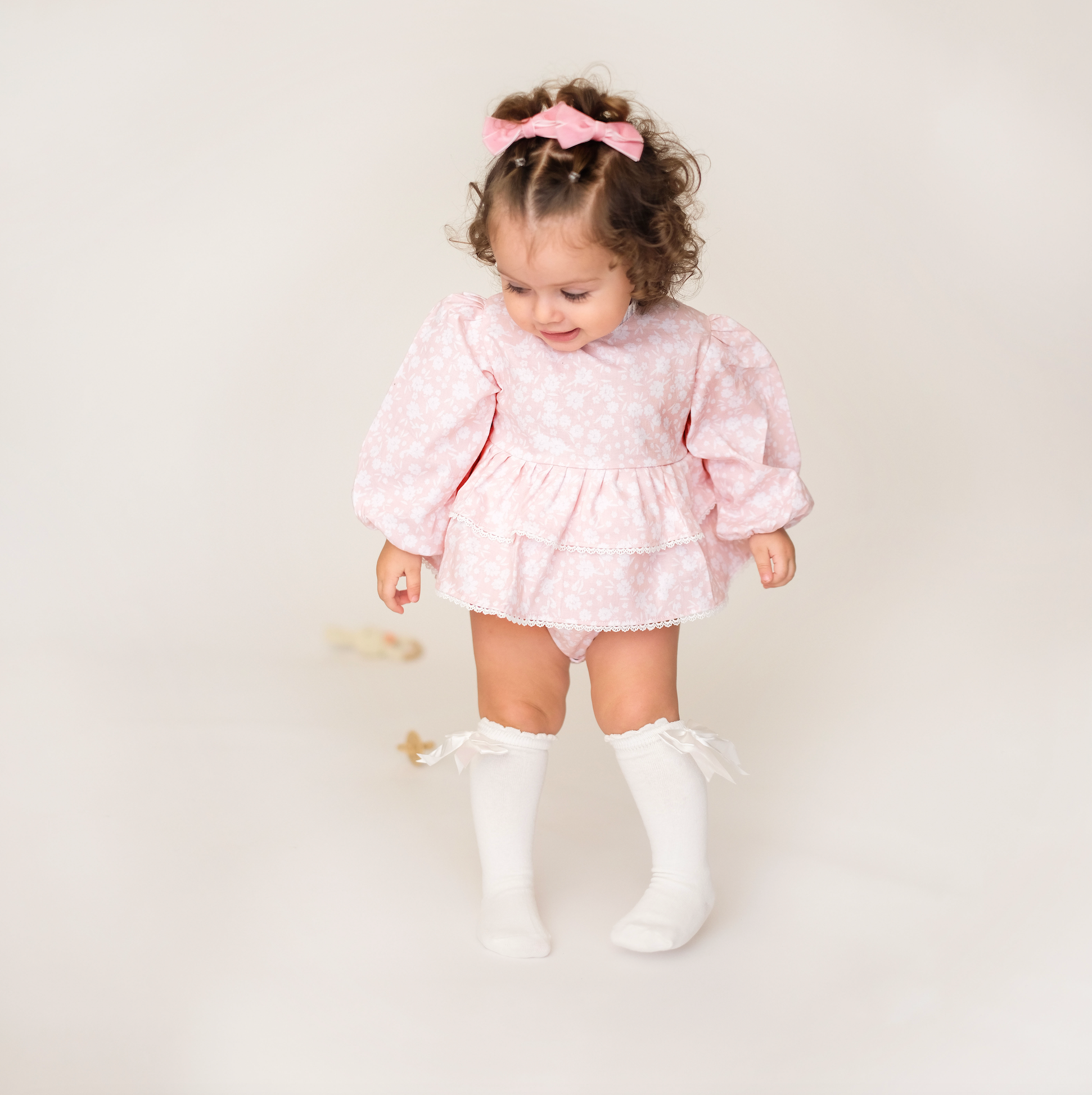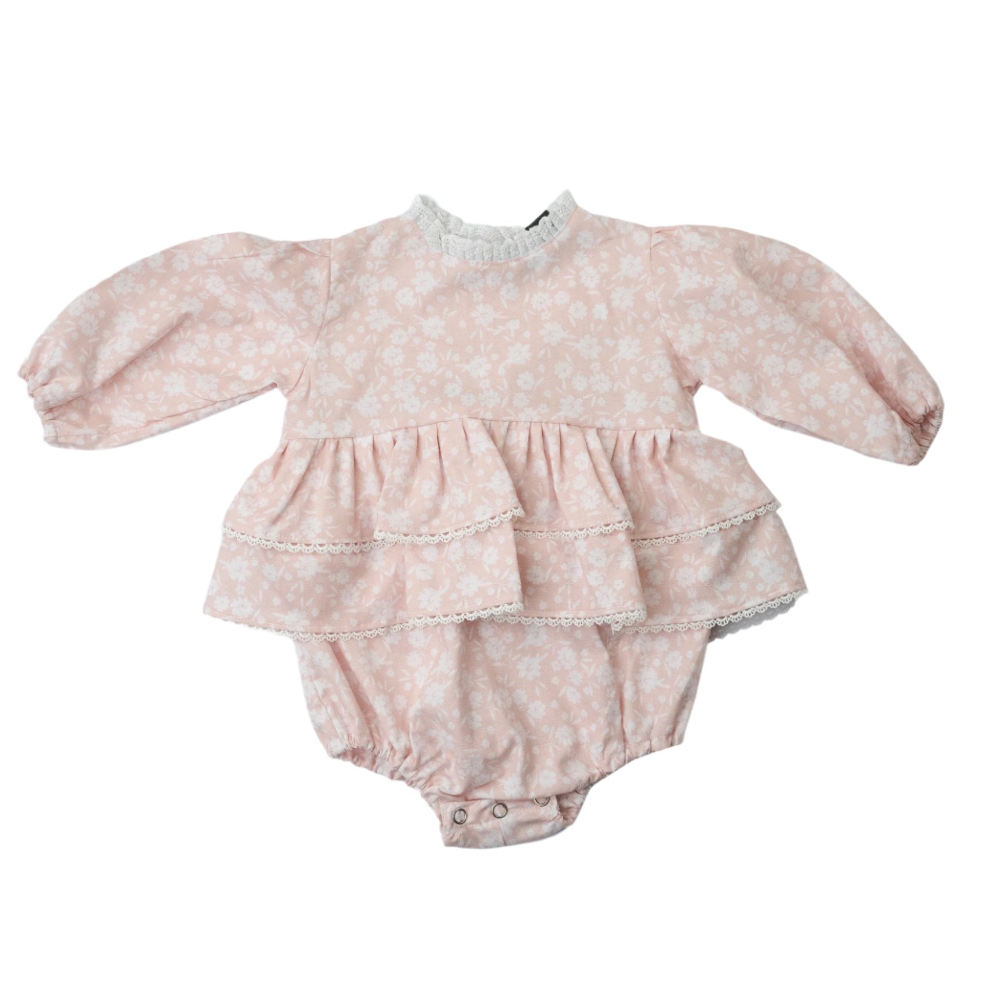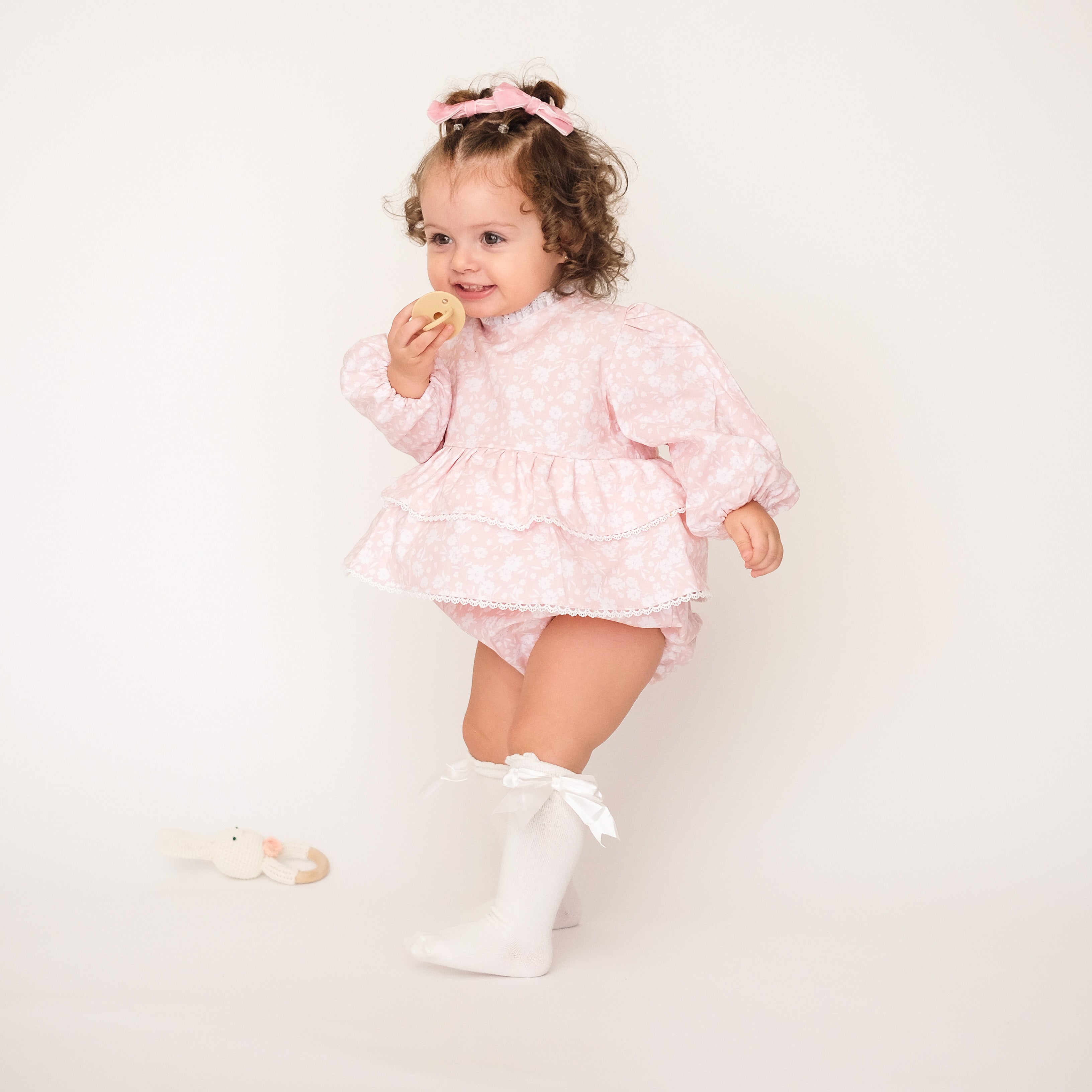 Rantita para bebé con faldita de olanes, confeccionada en suave tela de algodón. Este encantador diseño incluye broches de presión para una puesta rápida y cómoda. Perfecta para darle a tu bebé un toque de dulzura y comodidad, ideal para el día a día.