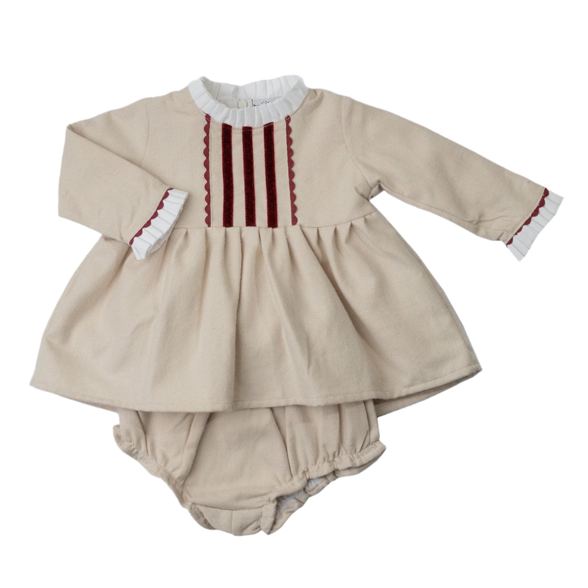 Jesusín para bebé compuesto por una blusita y bloomer, confeccionado en tela de felpa calientita y algodón suave. Ideal para mantener a tu bebé abrigado y cómodo, este conjunto es perfecto para los días frescos. Su diseño tierno y práctico asegura libertad de movimiento, ofreciendo comodidad durante todo el día.