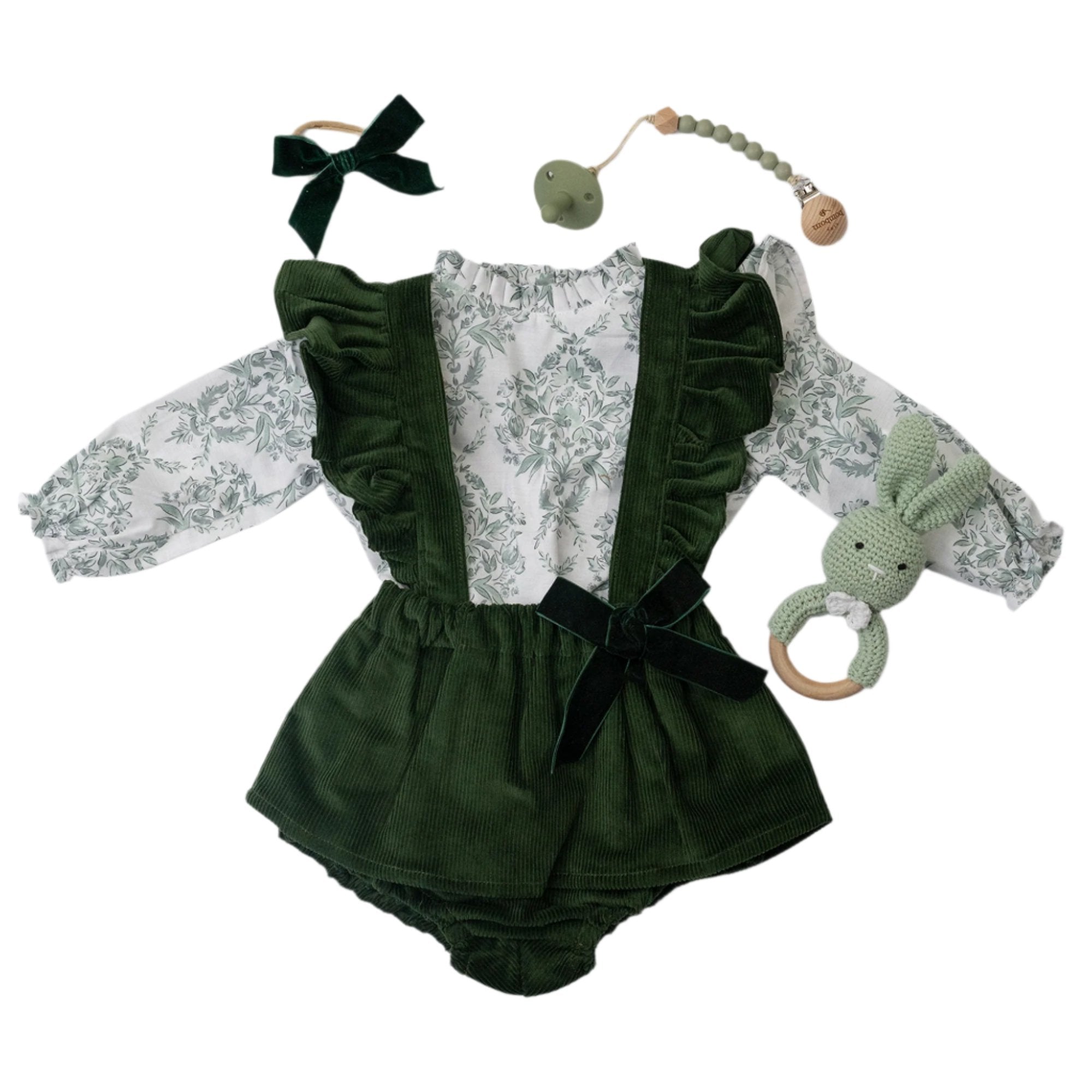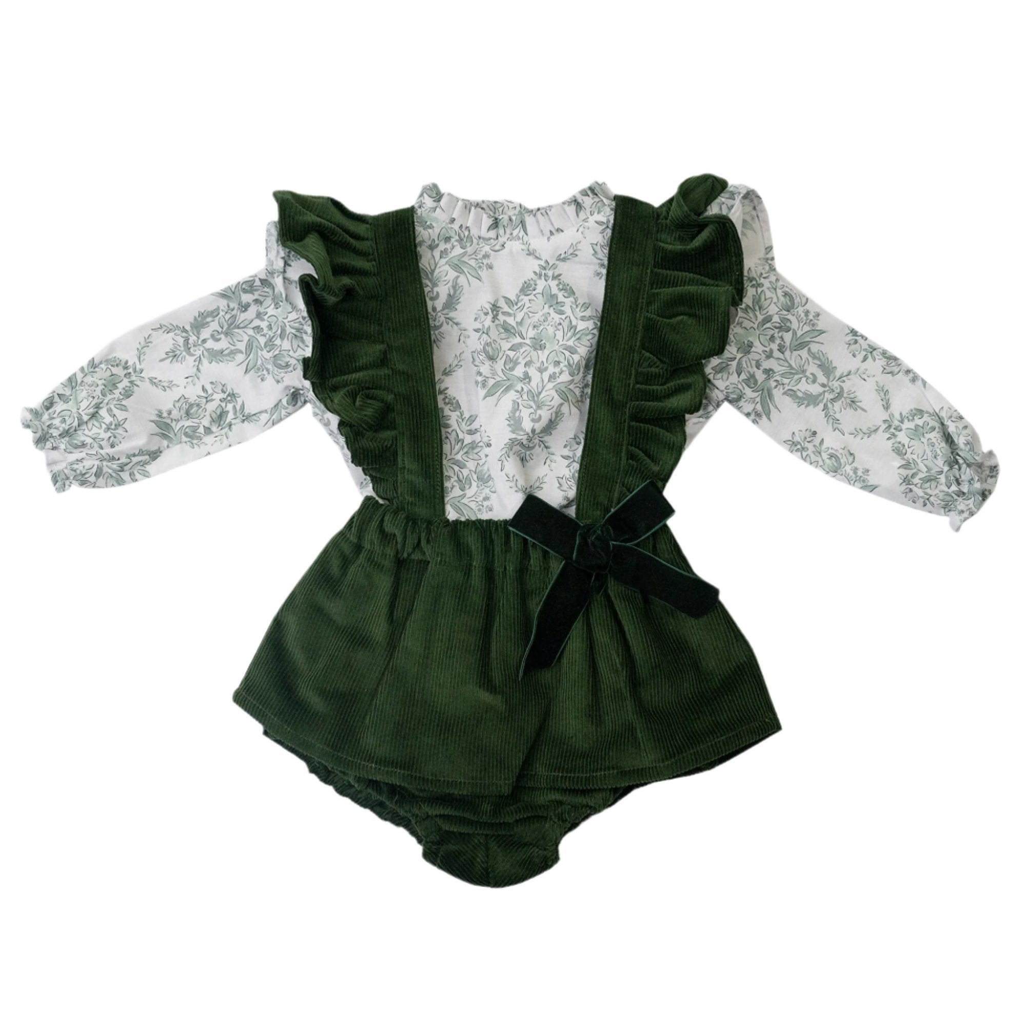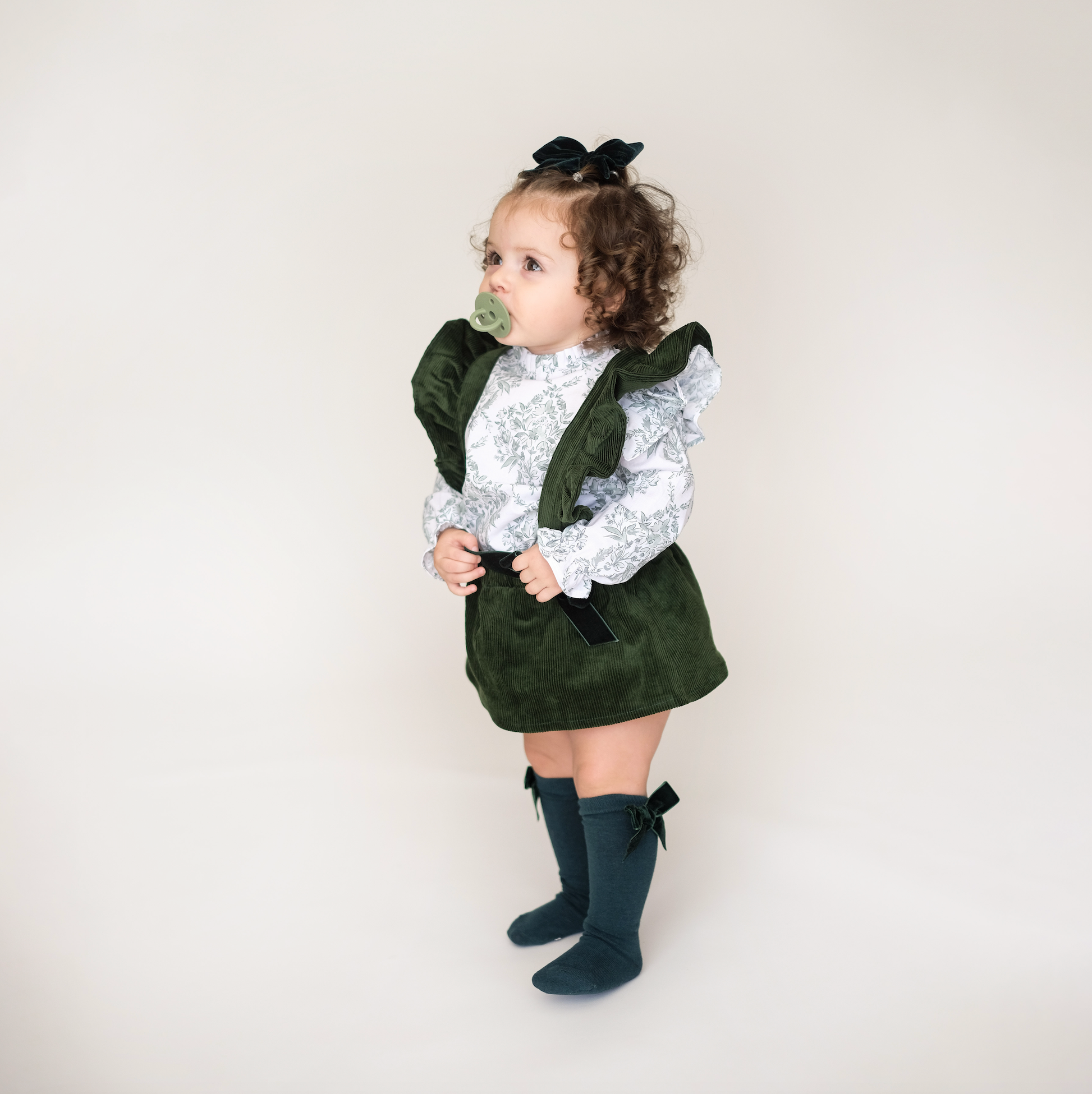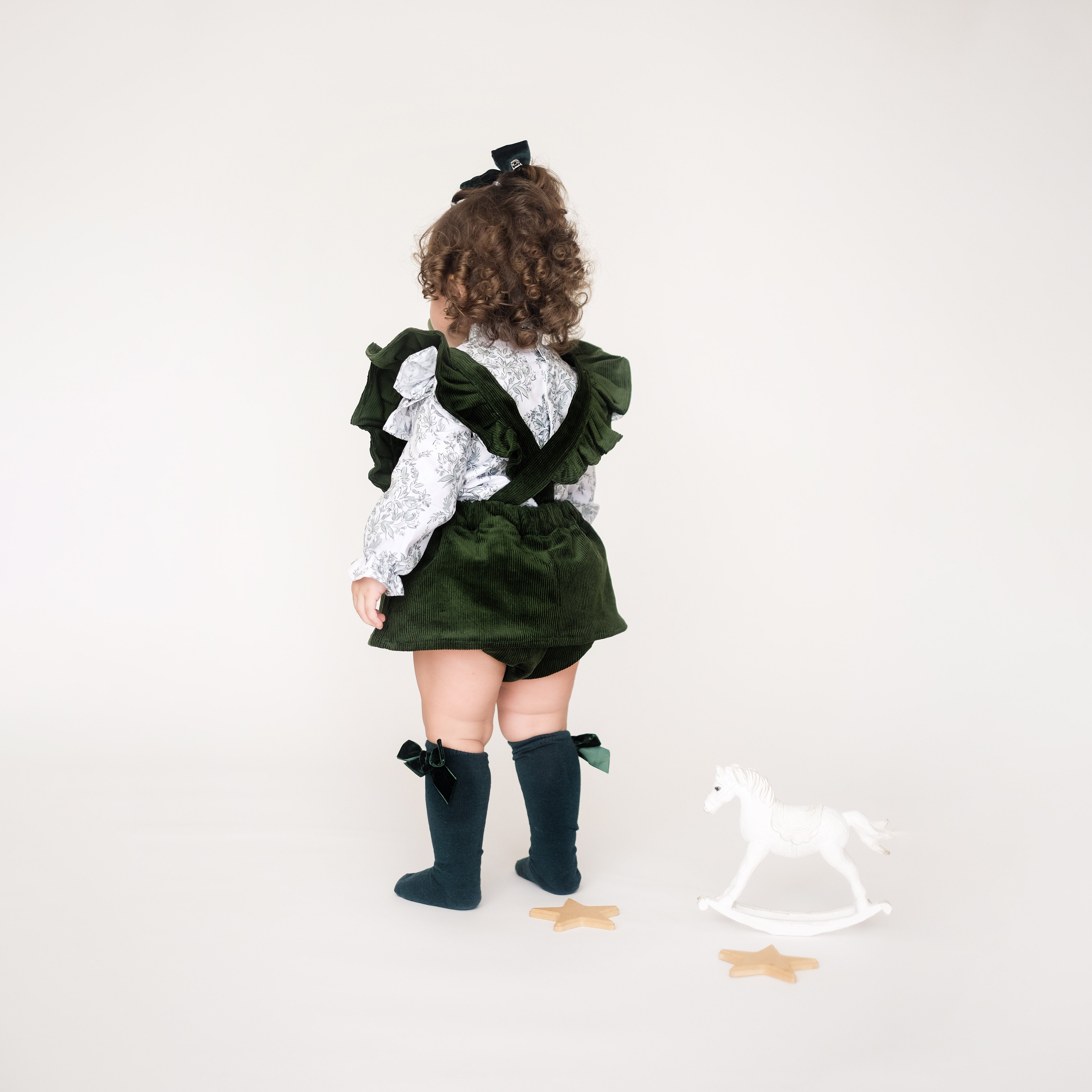 Falda con tirantes de tela de pana para bebé con moñito delicado en tericiopelo,. Ideal para el otoño e invierno. Confeccionada en pana, esta falda ofrece comodidad y calidez. Sus tirantes ajustables permiten un ajuste perfecto, mientras que su diseño encantador y versátil la convierte en una prenda perfecta para cualquier ocasión.