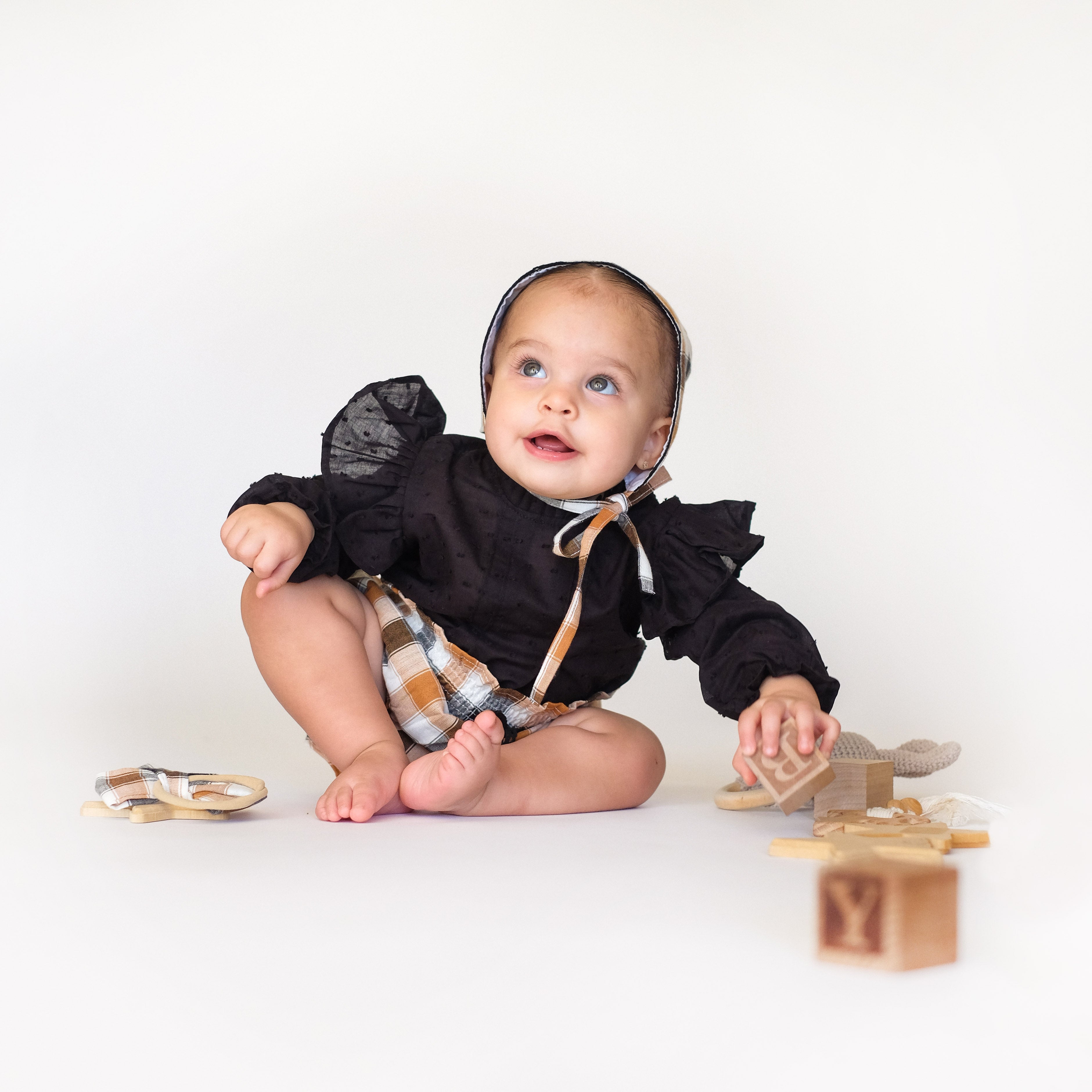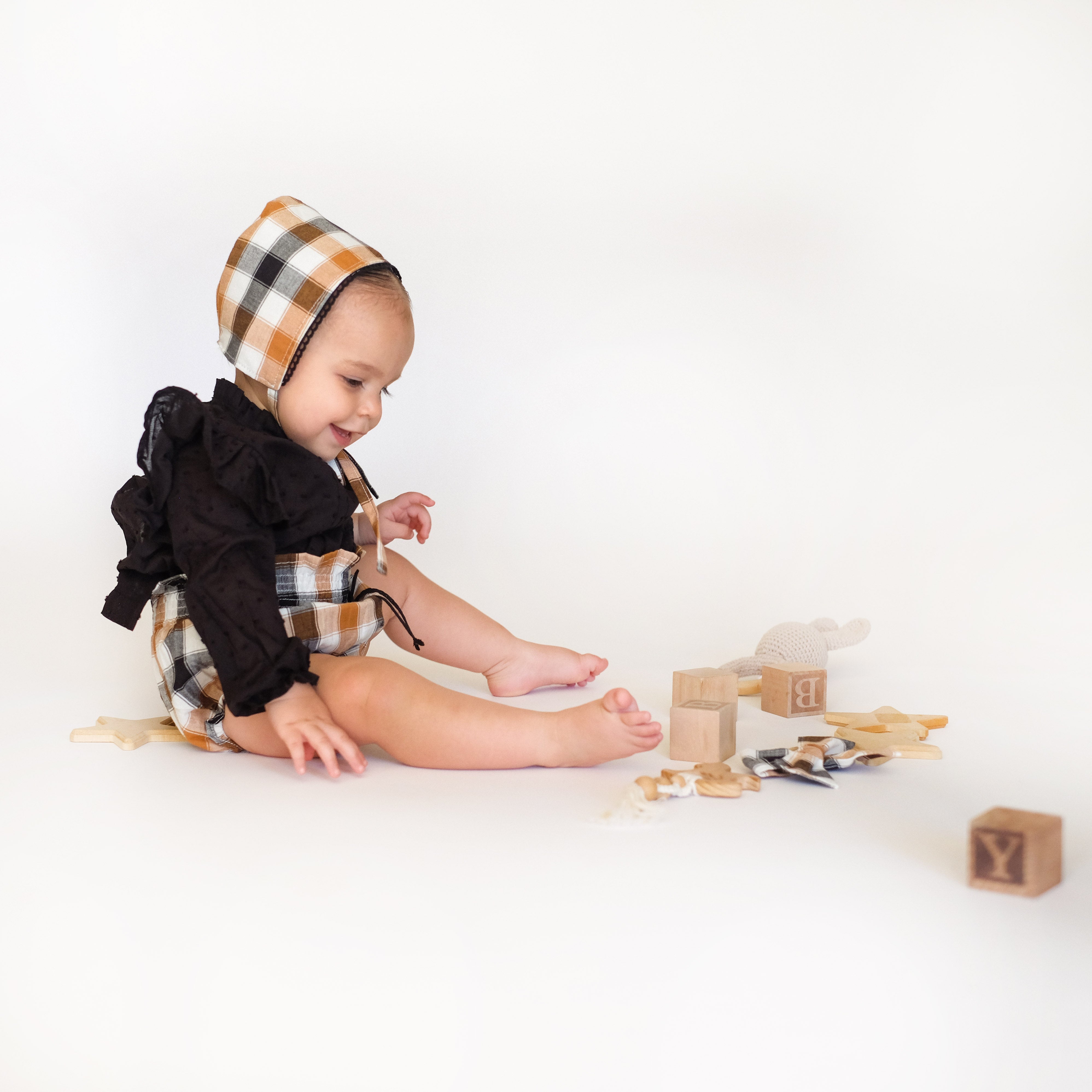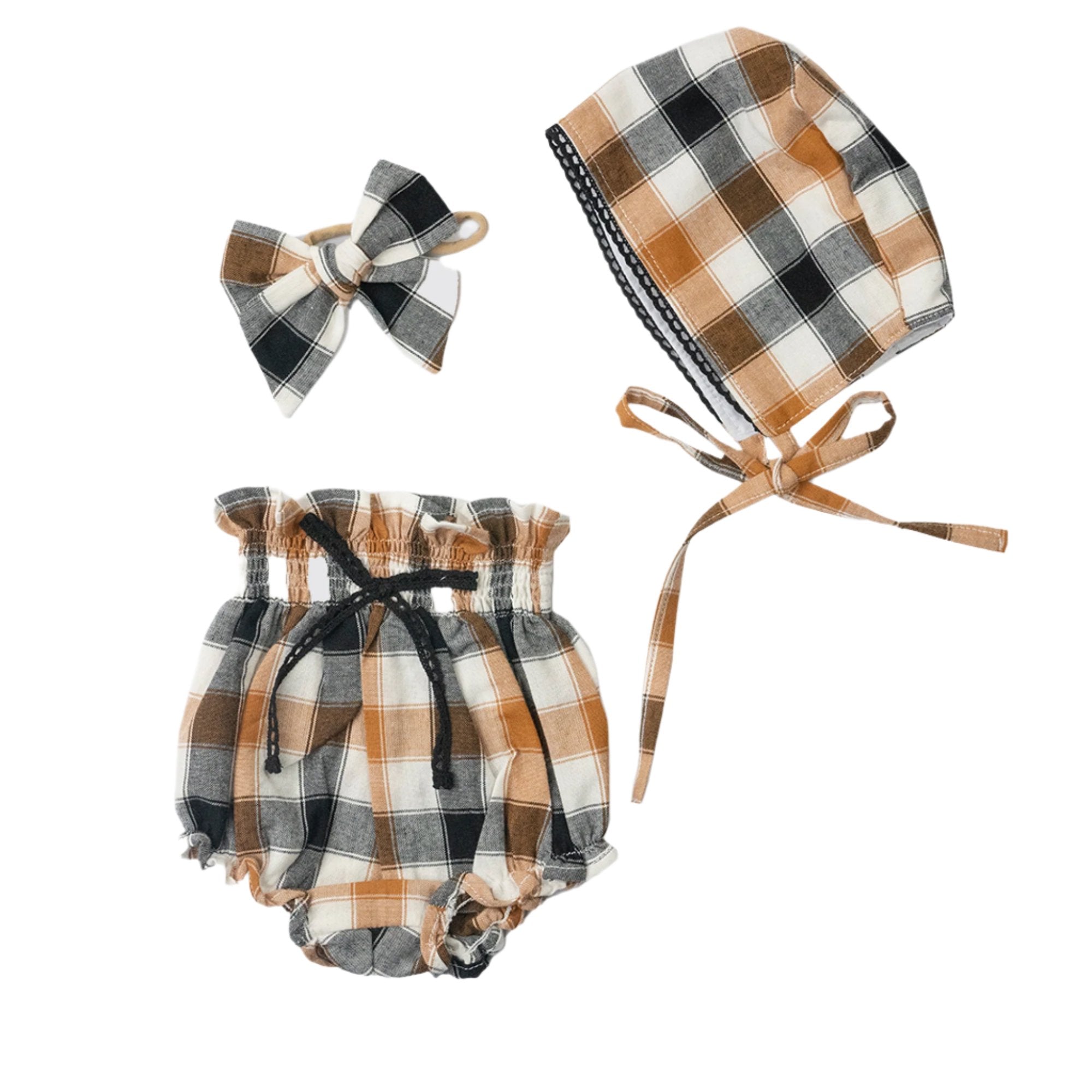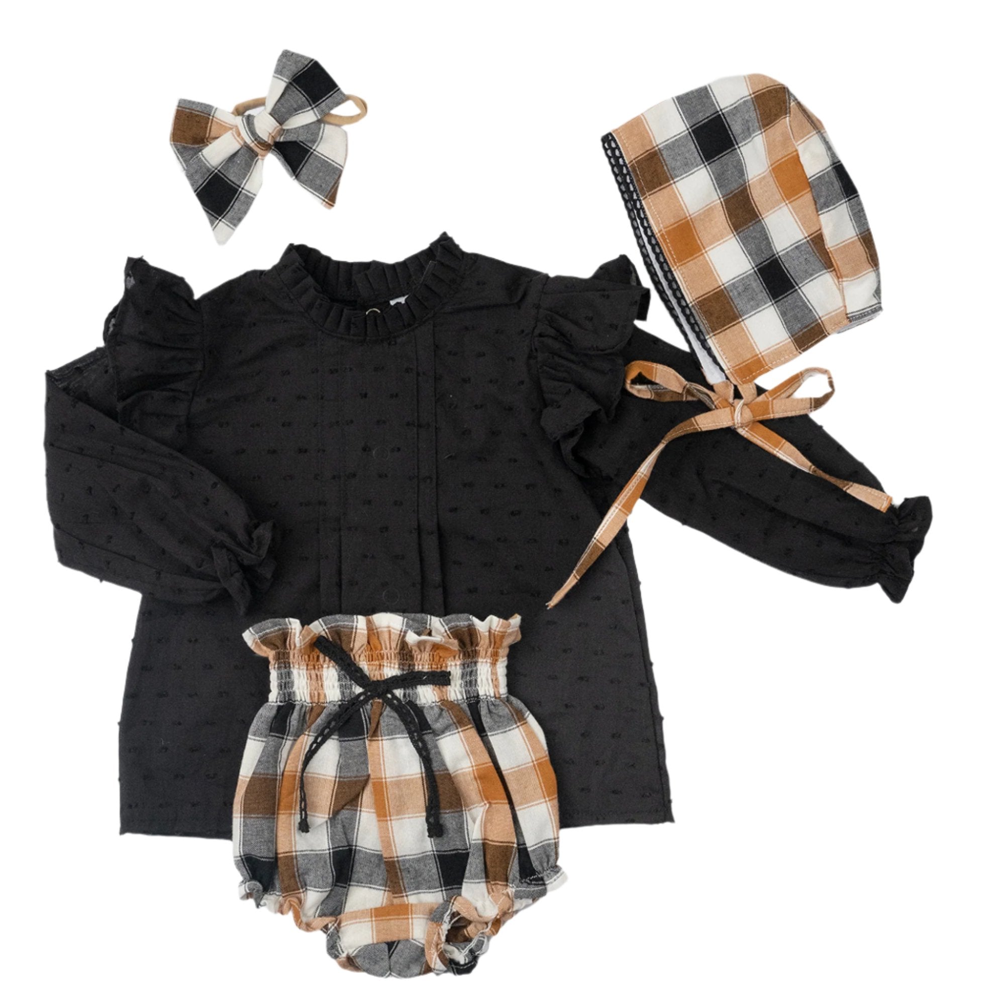 Conjunto Bloomer Cuadros Mostaza y Negro 3 Piezas