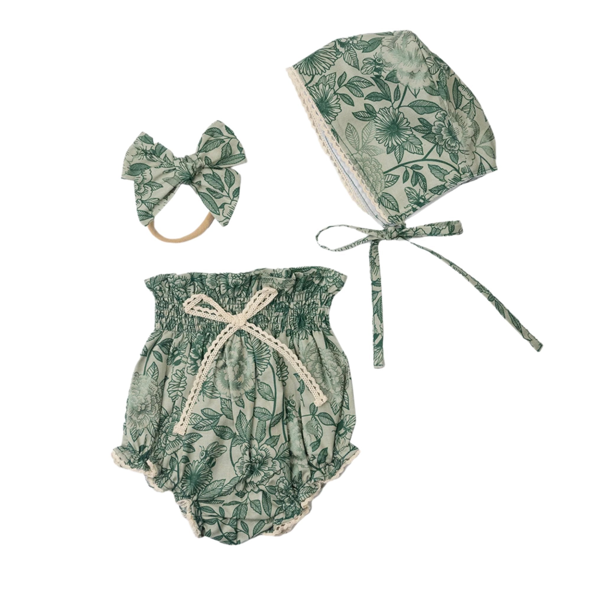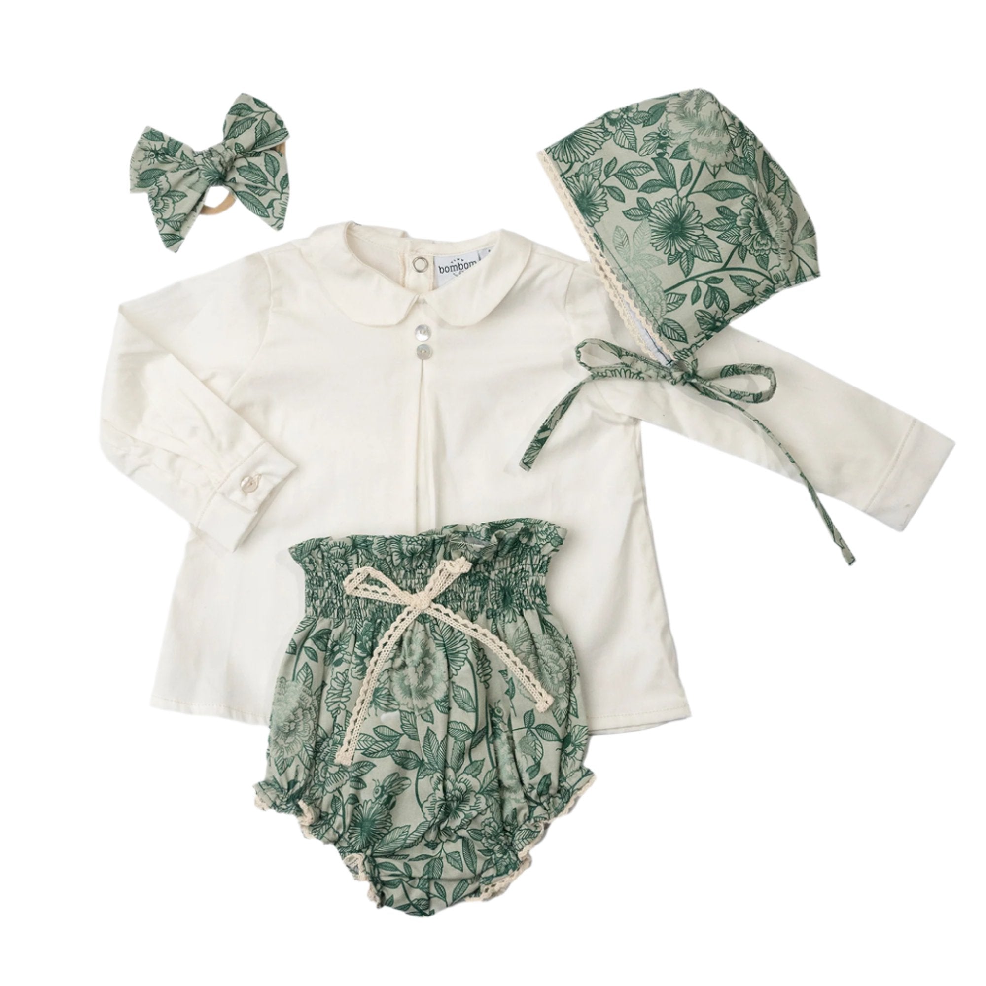 Set Flores Verde con Encaje
