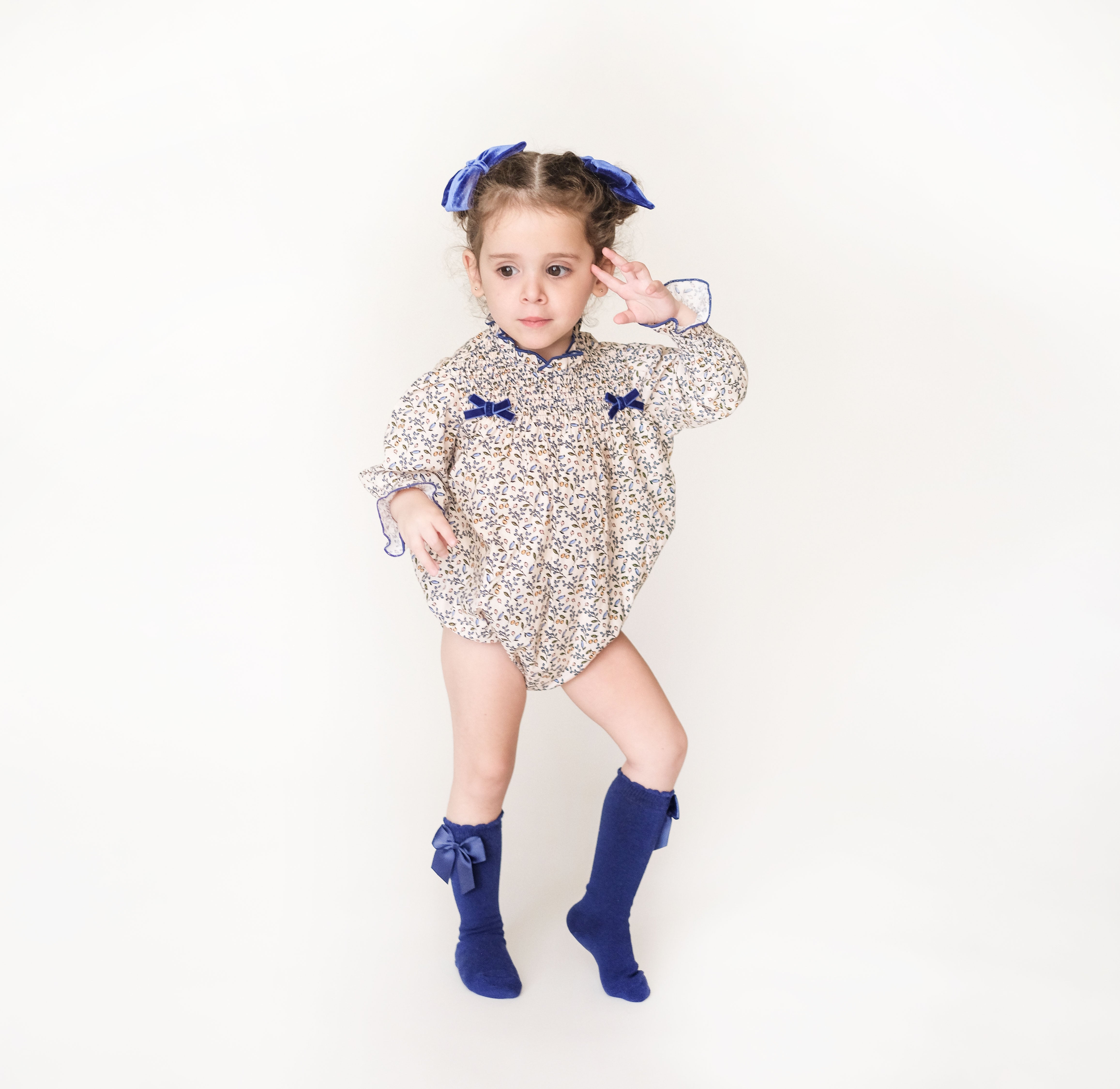Ranita Berries con moños terciopelo Azul Rey