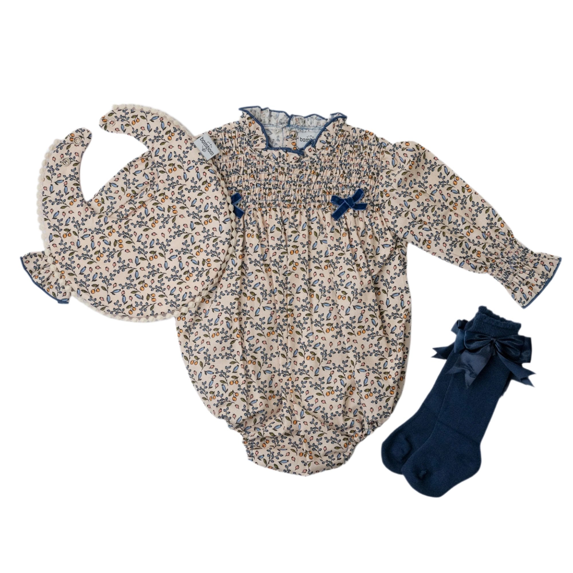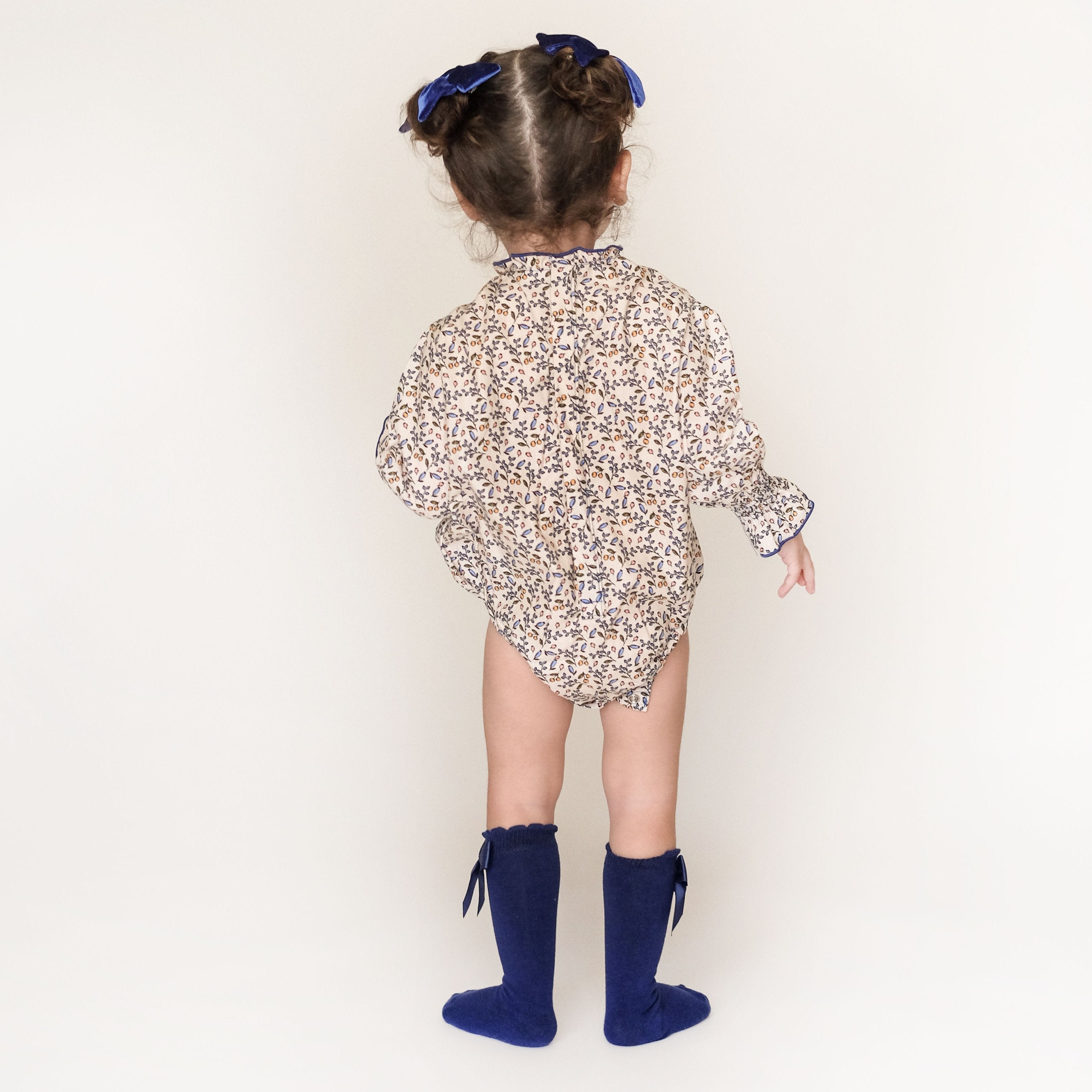 Rantita para bebé confeccionada en suave tela de algodón y con dos moños delicados de terciopelo. Este encantador diseño incluye broches de presión para una puesta rápida y cómoda. Perfecta para darle a tu bebé un toque de dulzura y comodidad, ideal para el día a día.