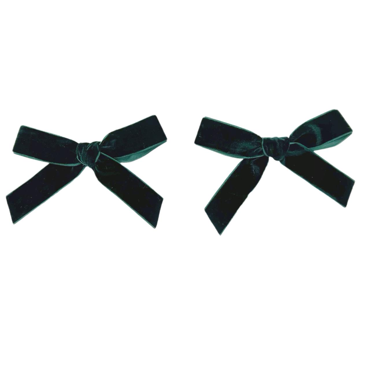 Par de moños elegantes elaborados con lazo de terciopelo suave. Su diseño clásico y delicado aporta un toque femenino y sofisticado, ideal para complementar peinados en ocasiones especiales o para dar un detalle chic al look diario.