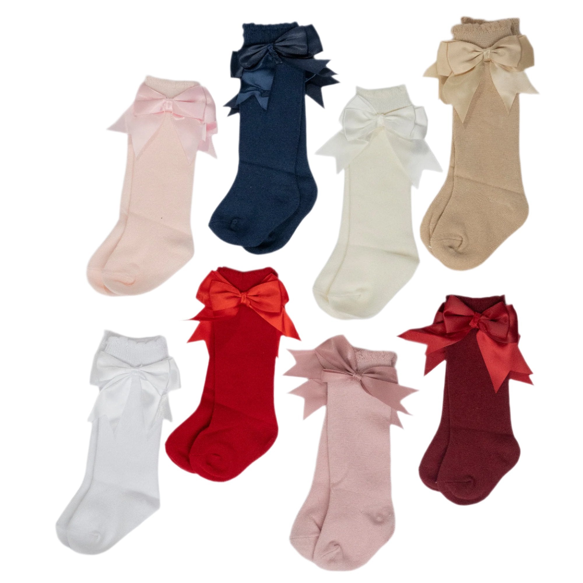Calceta alta confeccionada en suave material que ofrece comodidad durante todo el día. Con un delicado moño de satin, aportando un toque elegante y sofisticado. Ideal para ocasiones especiales o para un look encantador en el día a día.