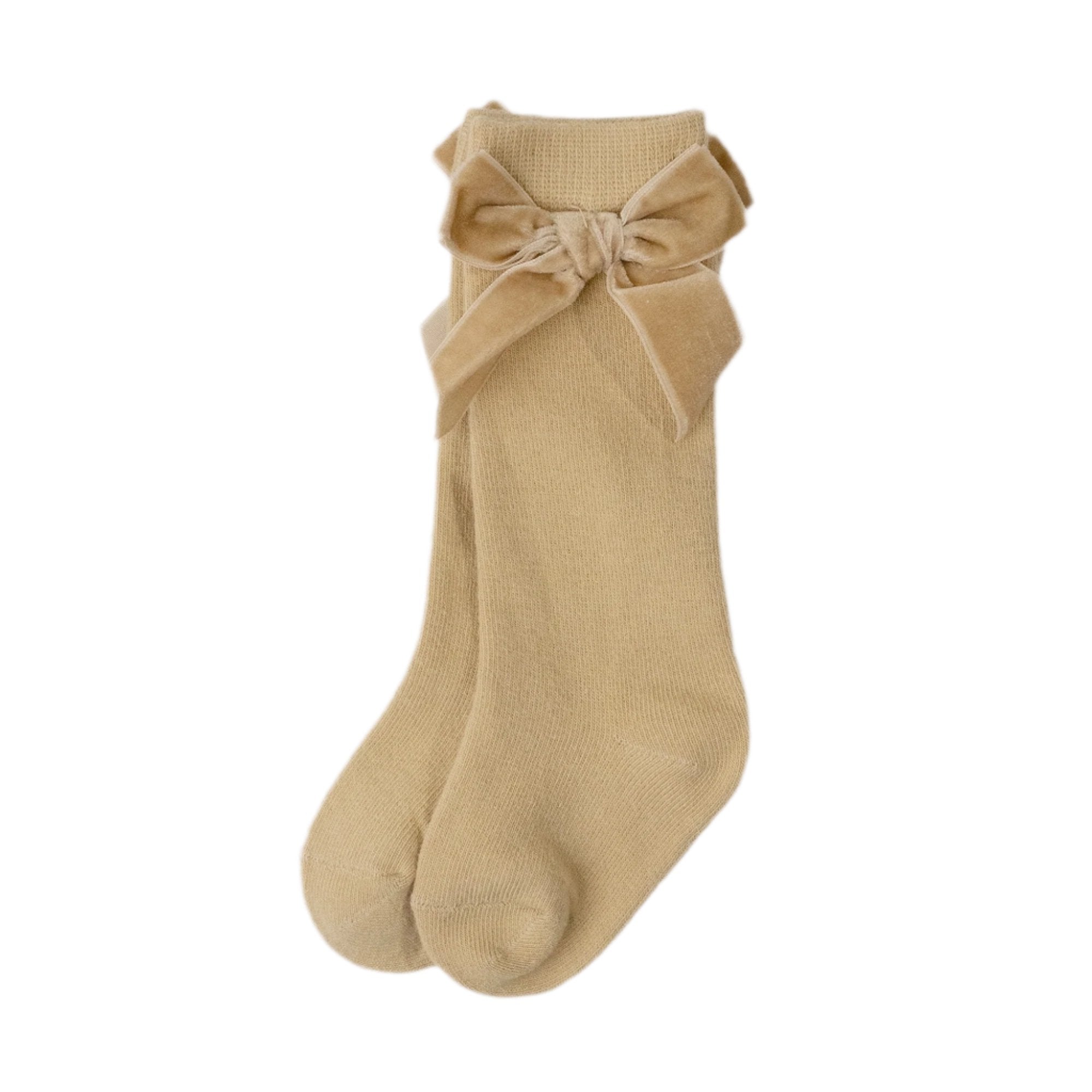 Calceta alta confeccionada en suave material que ofrece comodidad durante todo el día. Con un delicado moño de terciopelo, aportando un toque elegante y sofisticado. Ideal para ocasiones especiales o para un look encantador en el día a día.