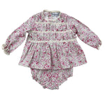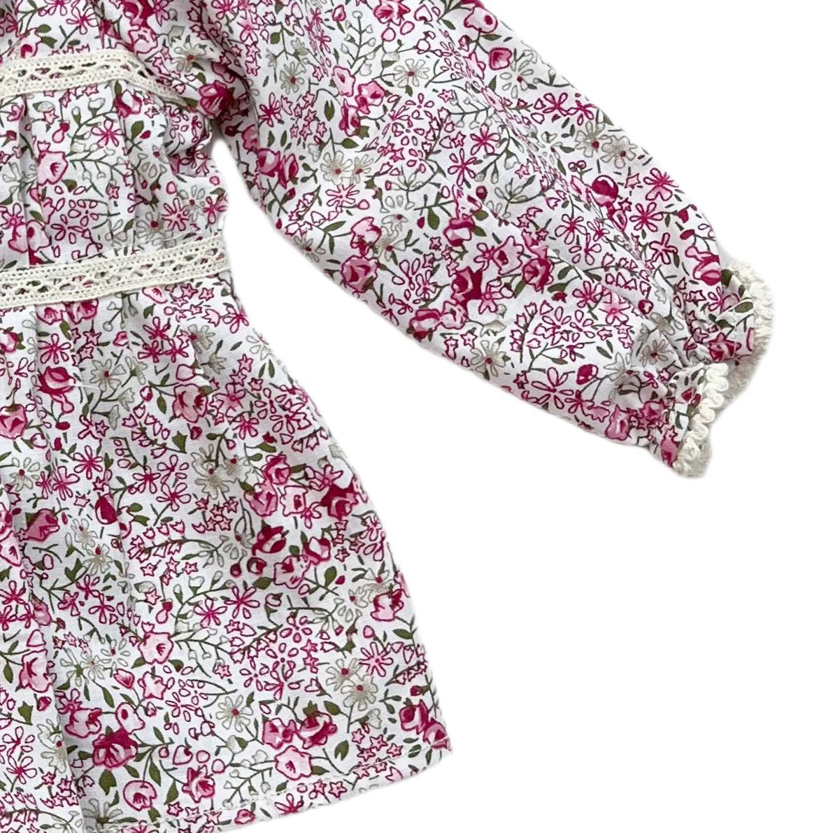 Jesusín para bebé compuesto por una blusita y bloomer, con detalle de plisado con encaje, confeccionado en tela de algodón suave. Este conjunto es perfecto para los días frescos. Su diseño tierno y práctico asegura libertad de movimiento, ofreciendo comodidad durante todo el día.