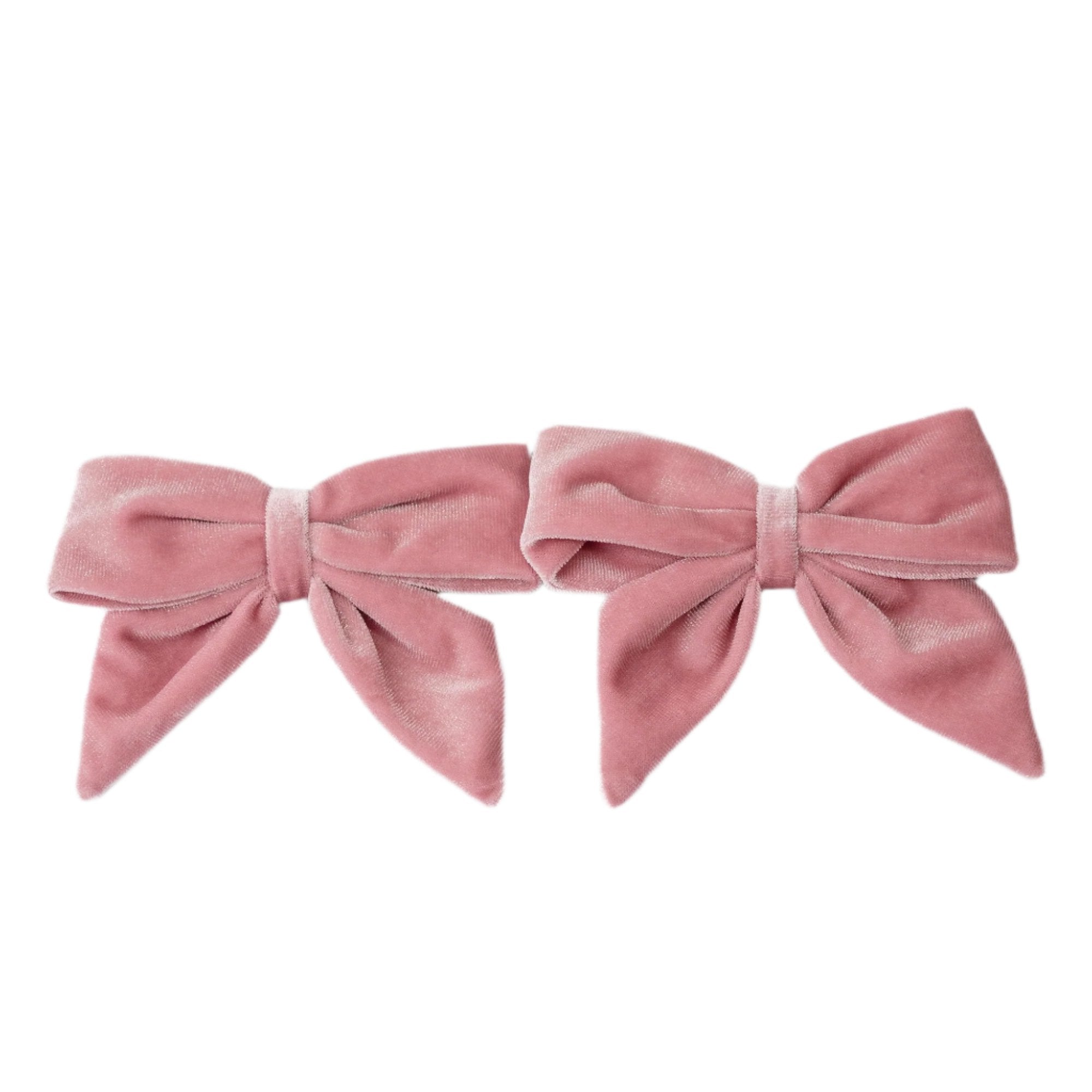 Par de moños de terciopelo para niña, delicados y elegantes, perfectos para añadir un toque sofisticado a cualquier look. Con un diseño suave y brillante, estos moños son ideales para peinados especiales o para el día a día, brindando estilo y confort.