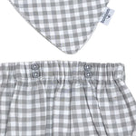 Set de bandana con bloomer en cuadros gris. Ideal para combinar con alguna camisa de algodón o de botones.