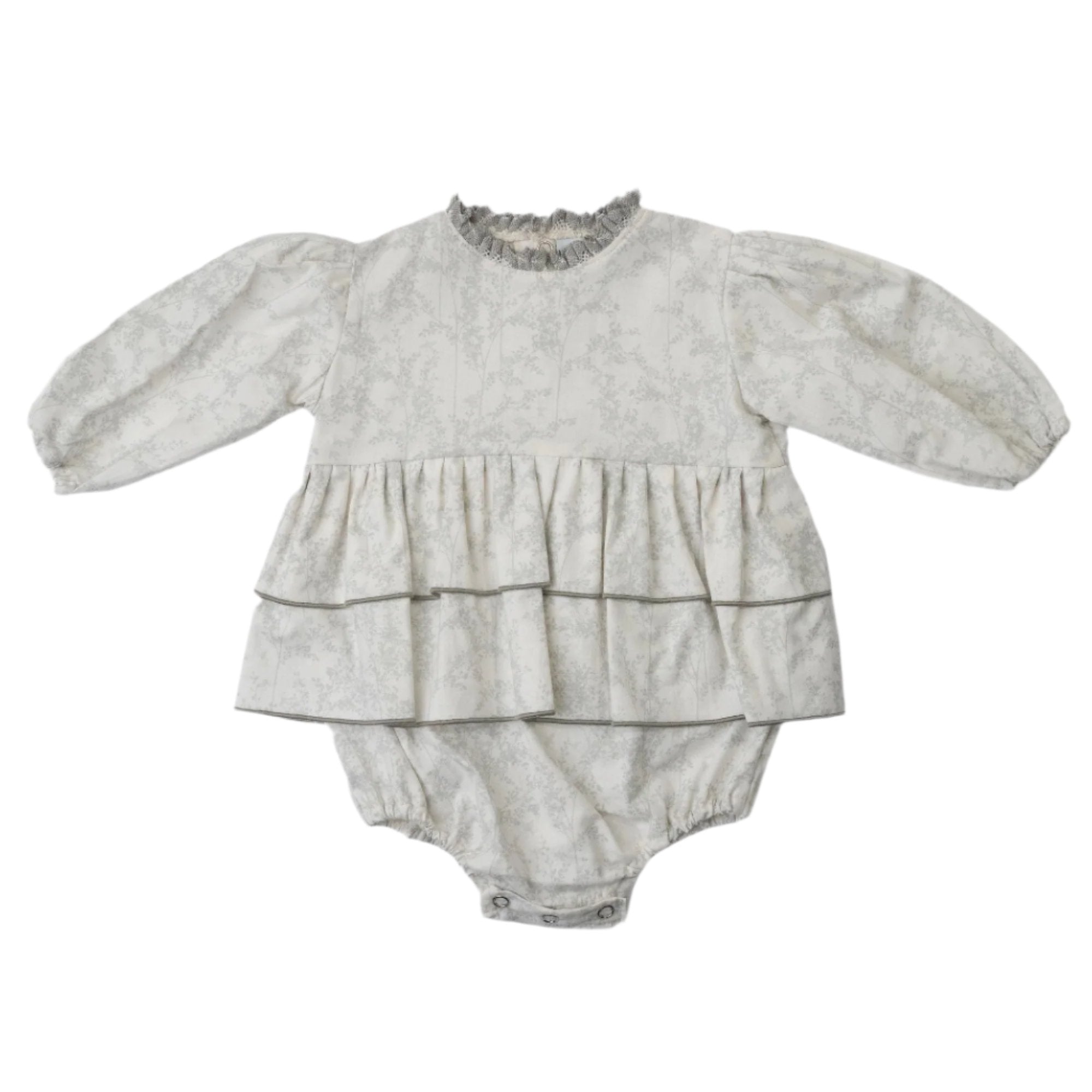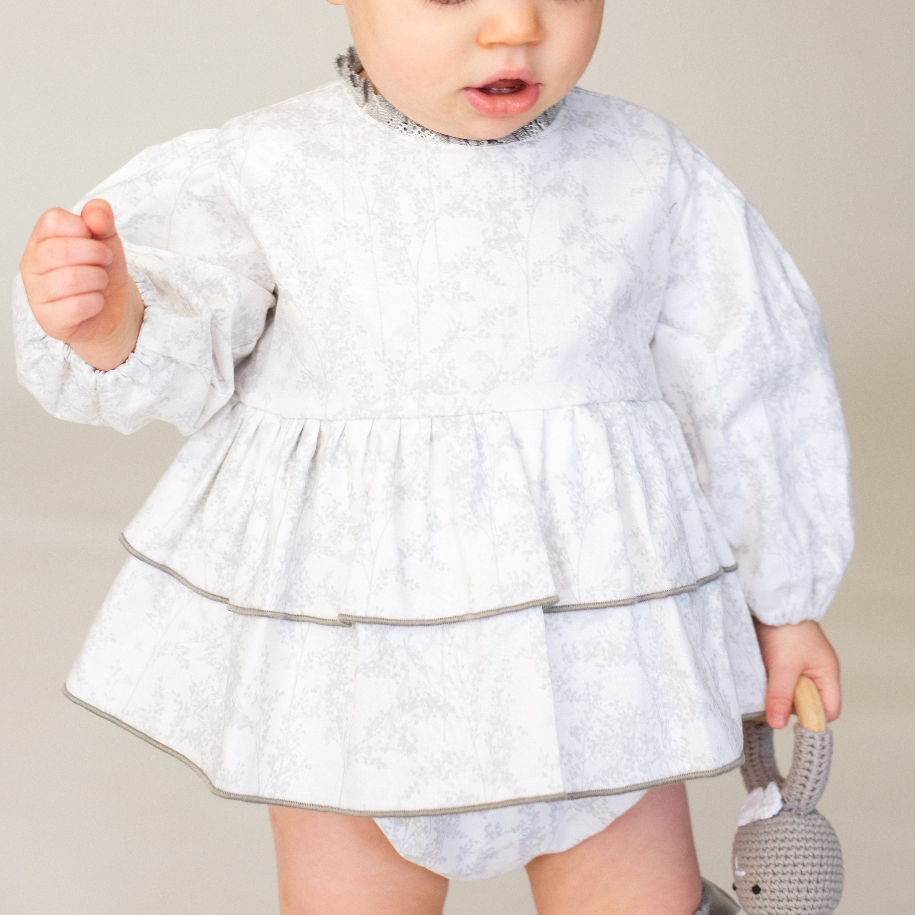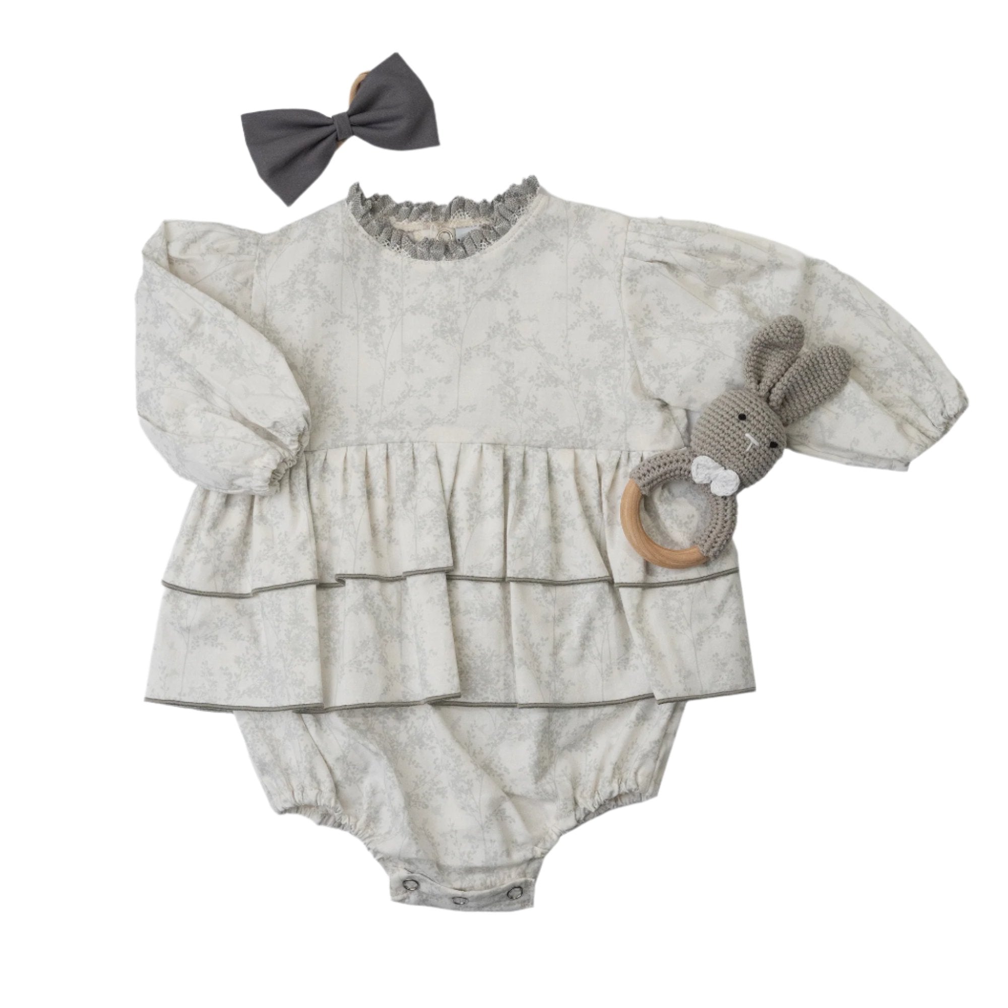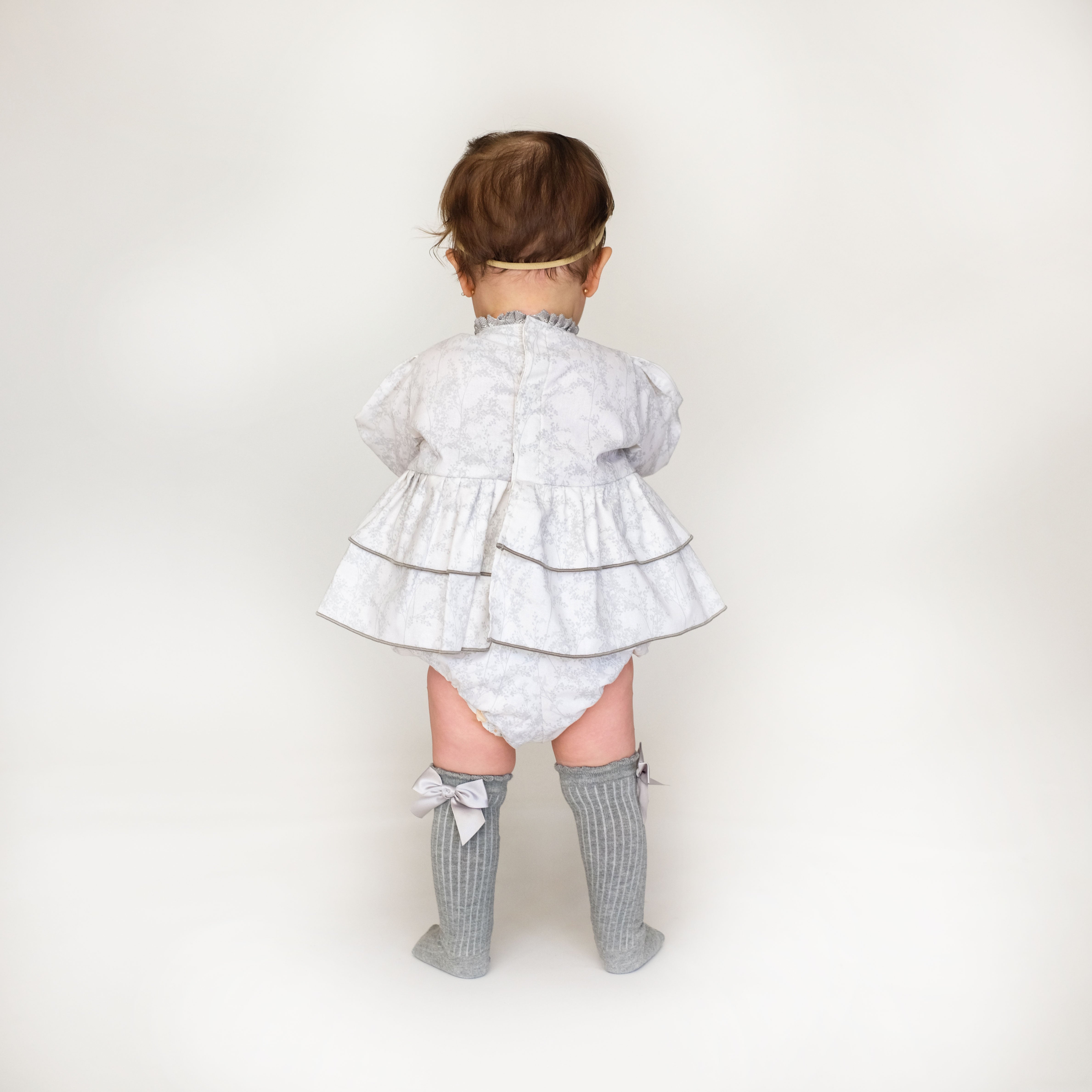 Rantita para bebé con faldita de olanes, confeccionada en suave tela de algodón. Este encantador diseño incluye broches de presión para una puesta rápida y cómoda. Perfecta para darle a tu bebé un toque de dulzura y comodidad, ideal para el día a día.